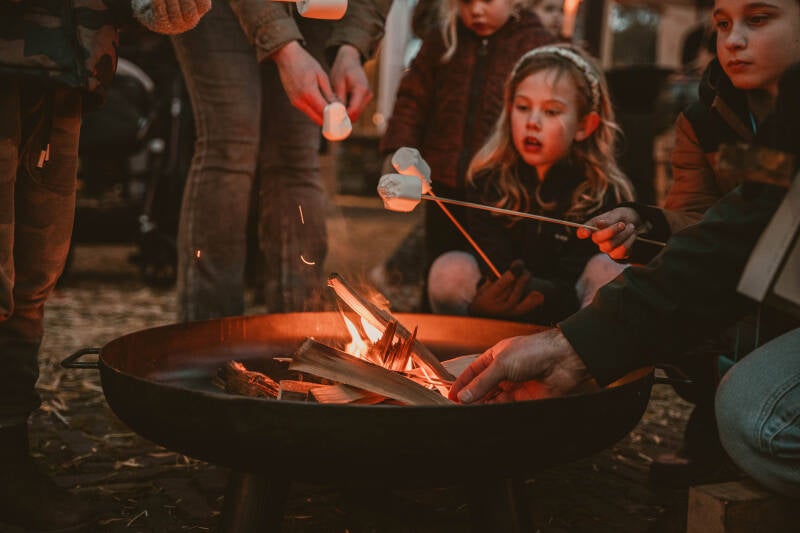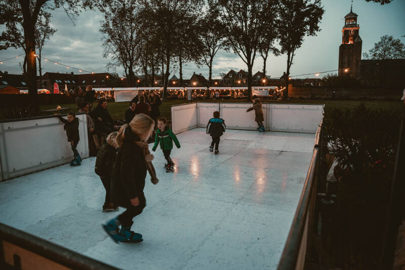 Kijk eens hoe gezellig dit eruit ziet! Een hele schattige ijsbaan voor de kinderen en fietsjes waarmee ze over de fair konden fietsen.